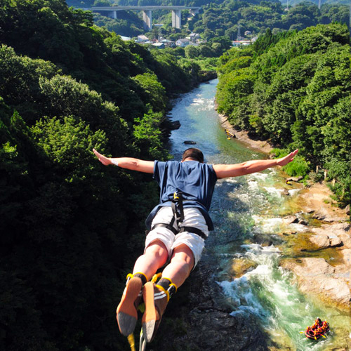 TVでもおなじみ、みなかみ・バンジージャンプ。いままで様々な方が体験しています。水あそびが得意でなくても大丈夫です。