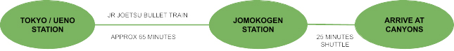 1) From Tokyo or Ueno Station take the Bullet train (65 minutes) to Jomokogen Station